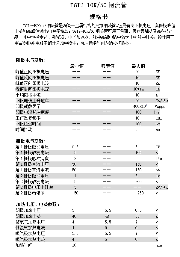 TGI2-10K-50技術(shù)參數(shù)表