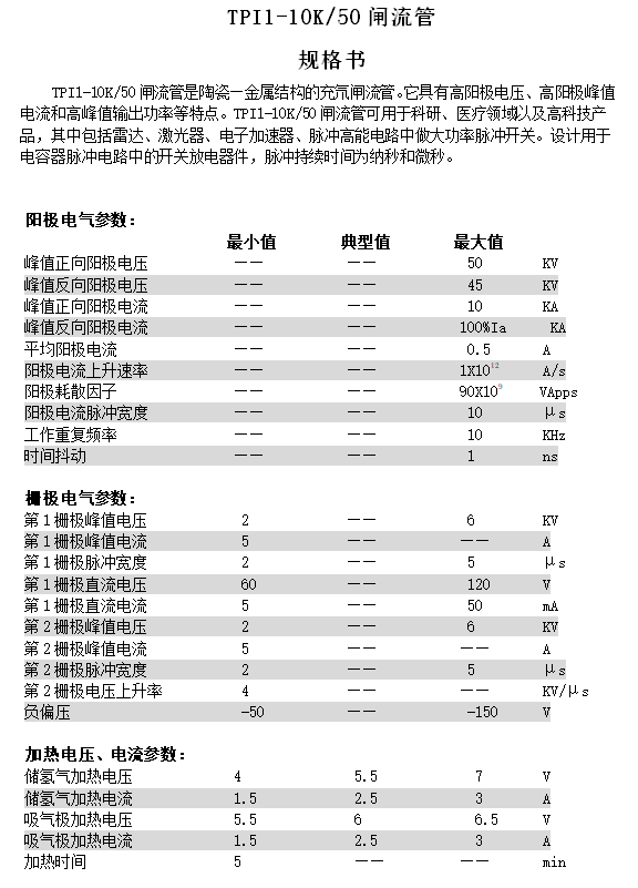 TPI1-10K-50技術(shù)參數(shù)表