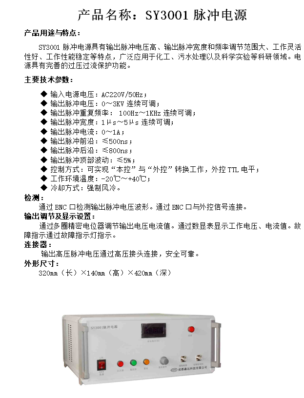 SY3001脈沖電源技術(shù)參數(shù)表