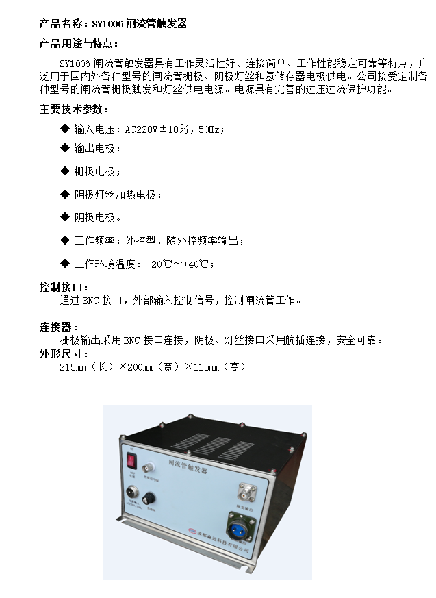 產(chǎn)品名稱:SY1006閘流管觸發(fā)器