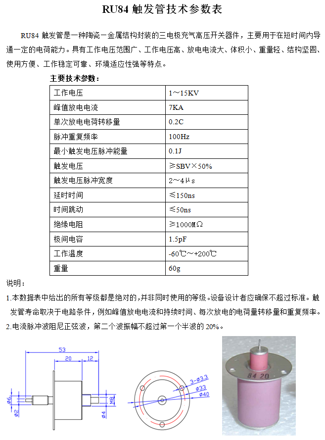 RU84觸發(fā)管技術(shù)參數(shù)表